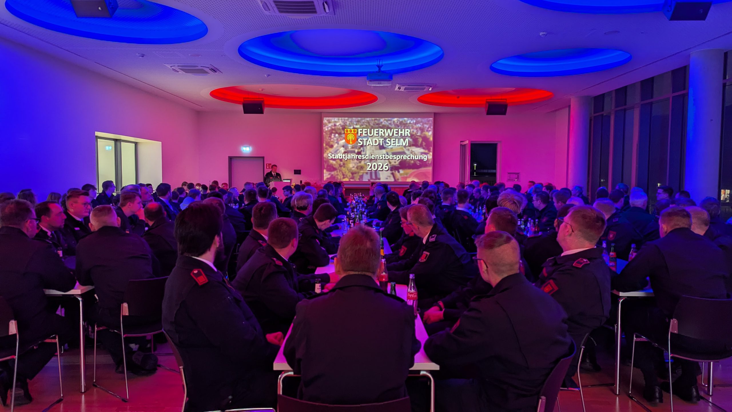 Am Freitag, den 6. März 2026 versammelten sich zahlreiche Feuerwehrfahrzeuge auf dem Campus in Selm. Anlass war die zweite Stadtjahresdienstbesprechung der Feuerwehr der Stadt Selm, die in der Volksbankhalle stattfand. Neben den Kameradinnen und Kameraden der Feuerwehr waren auch Vertreter anderer Hilfsorganisationen, der Kreisfeuerwehr, der Polizei sowie der Lokalpolitik der Einladung gefolgt.
